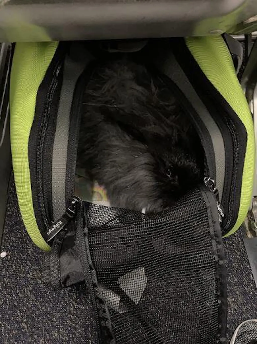 Includes safety tether, lockable zippers, and removable padded mat. Holds pets up to 16 lbs.