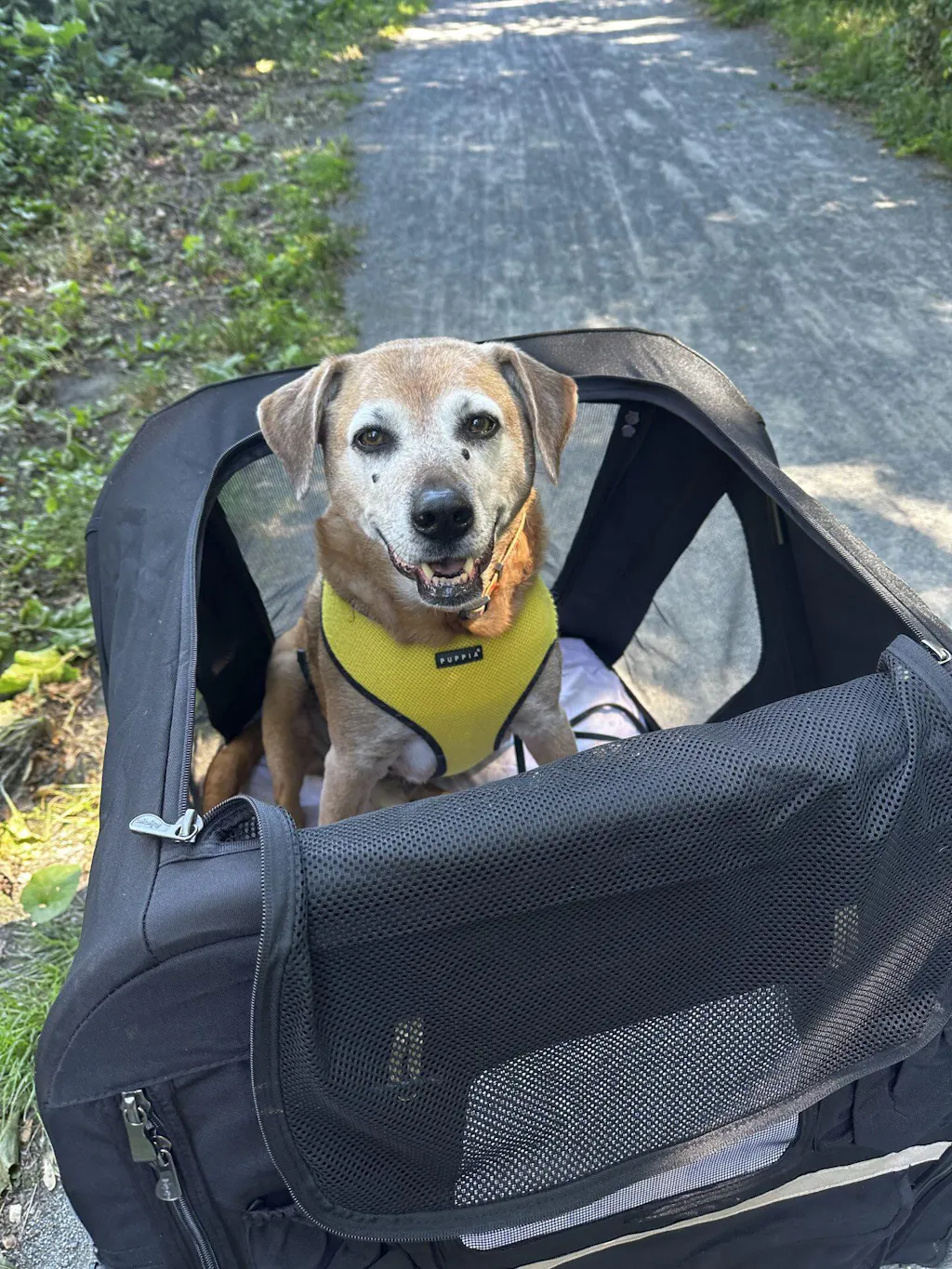 Senior dogs and pets with disabilities can still enjoy fresh air and sunshine in a safe dog stroller.